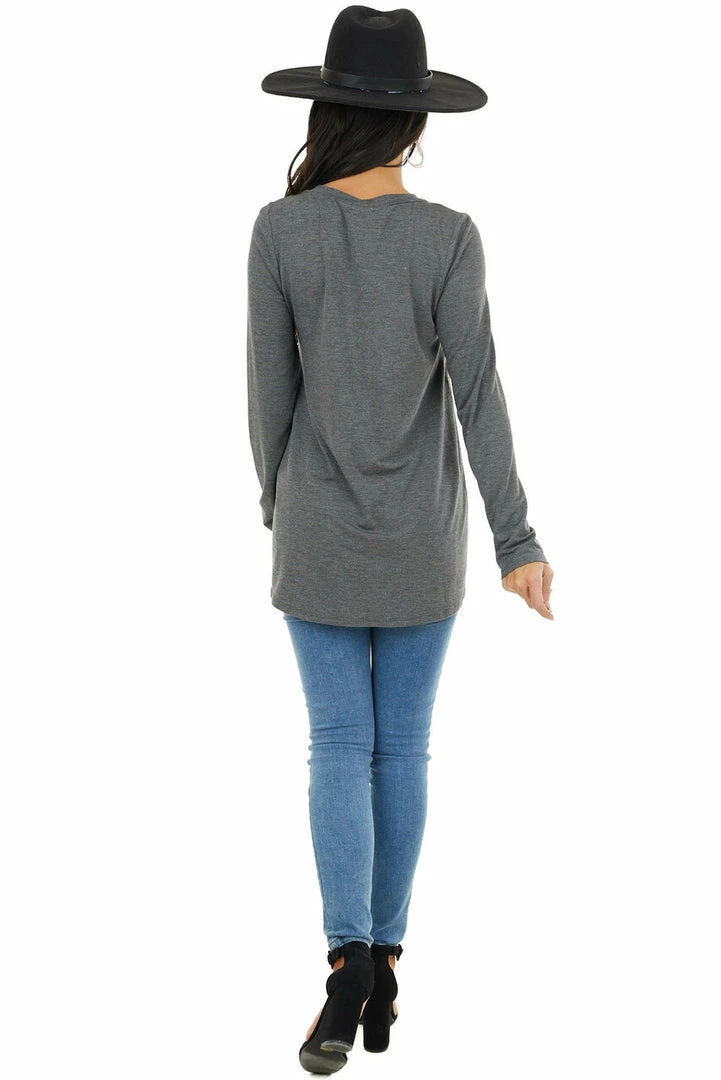 - Charcoal Long Sleeve Top with Sequin and Camo Details