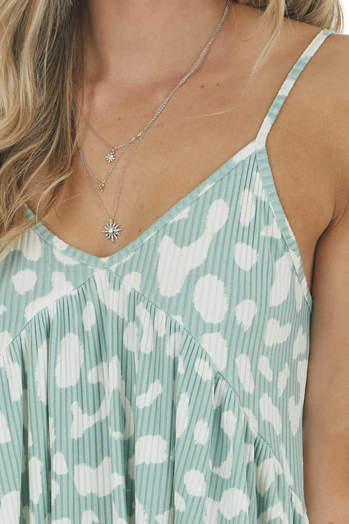 - Dark Mint Leopard Print Baby Doll Ribbed Knit Tank Top