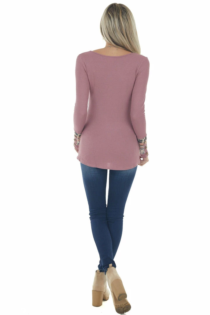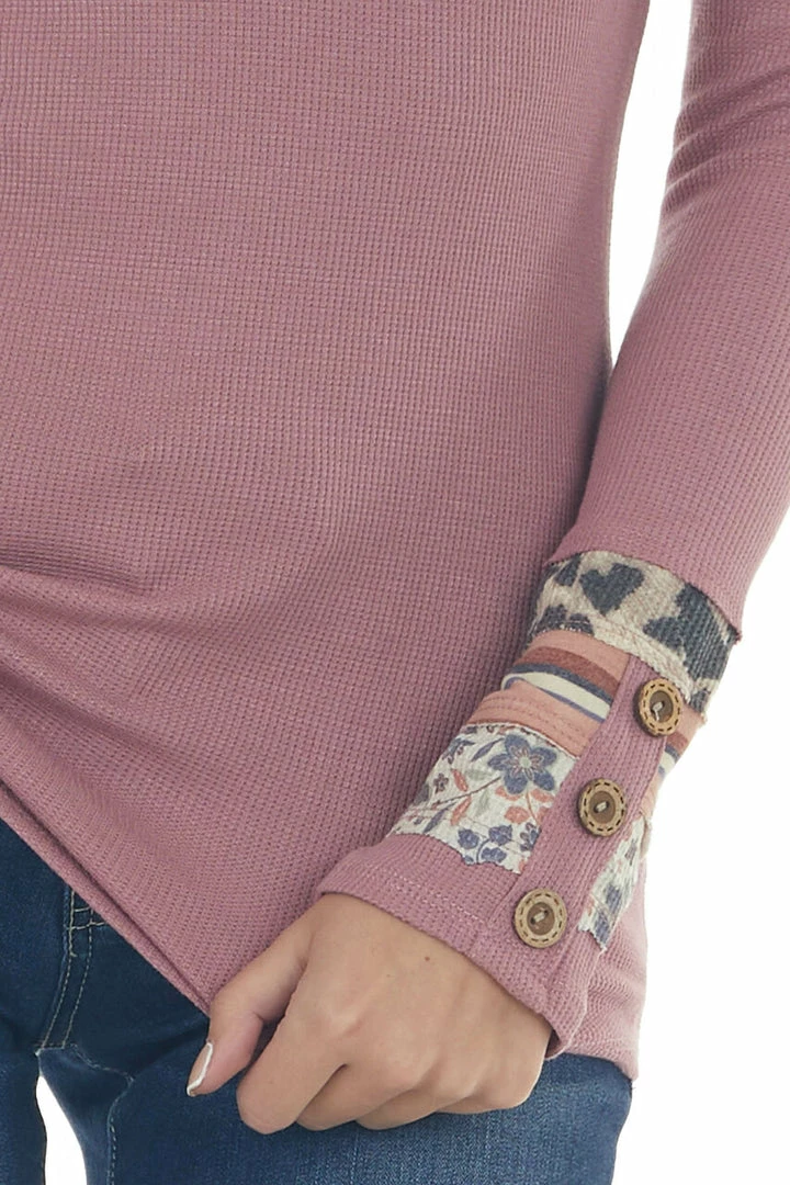 - Mauve Waffle Knit Top with Multiprint Cuff