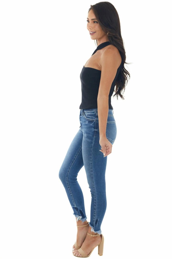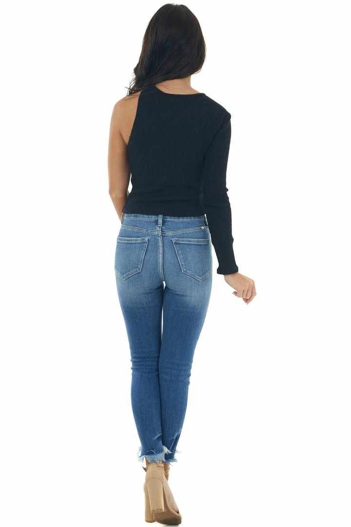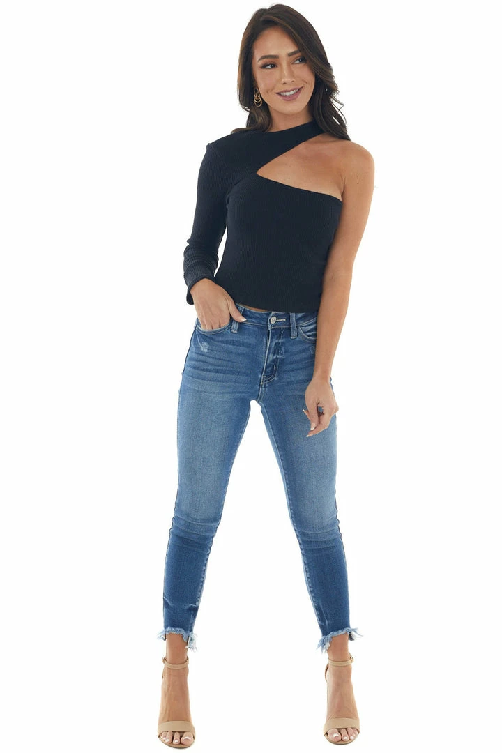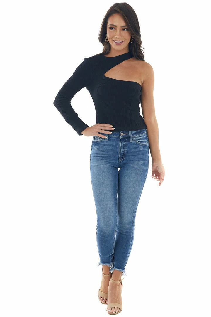 - Black Ribbed Knit One Shoulder Cut Out Top