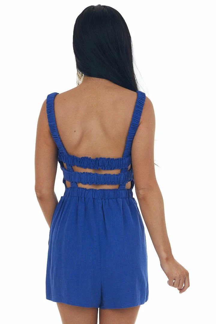 - Cobalt Smocked Sleeveless Romper with Open Back