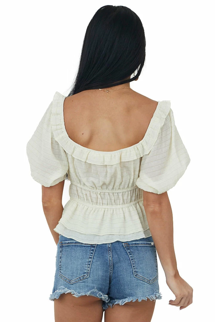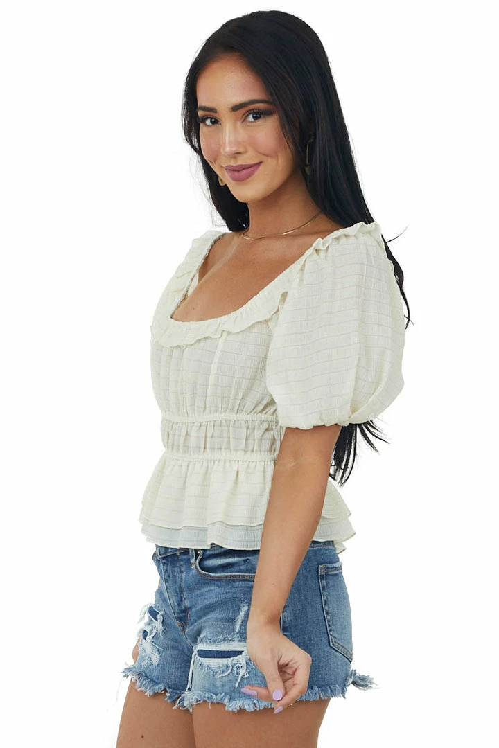 - Cream Square Neck Puff Sleeve Woven Peasant Top
