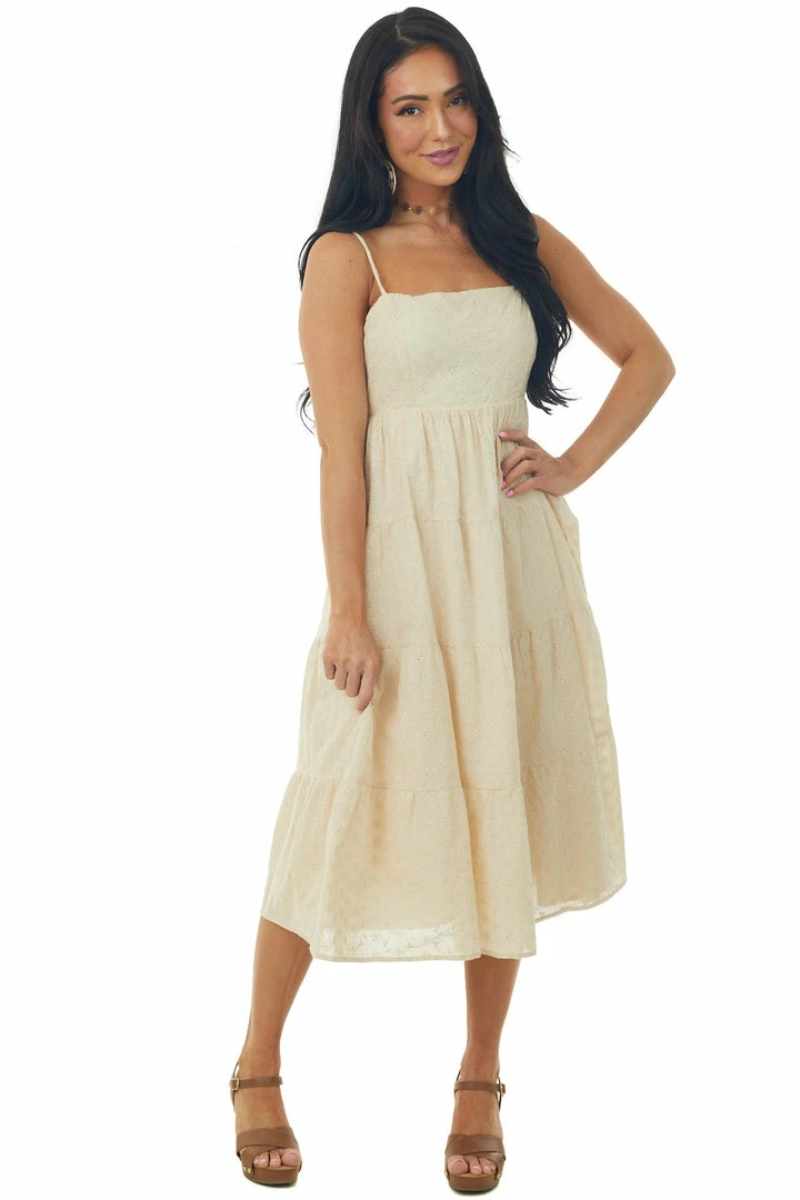 - Desert Sand Sleeveless Eyelet Lace Midi Dress