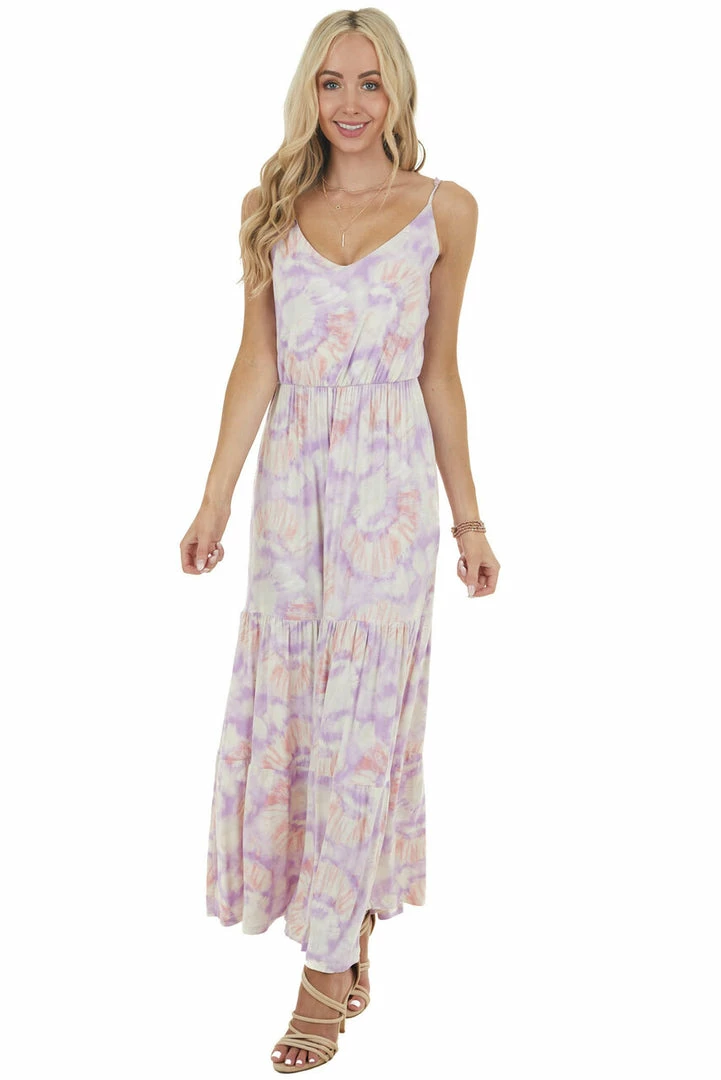 - Iris Tie Dye Sleeveless Blouson Maxi Dress with Cinch Waist