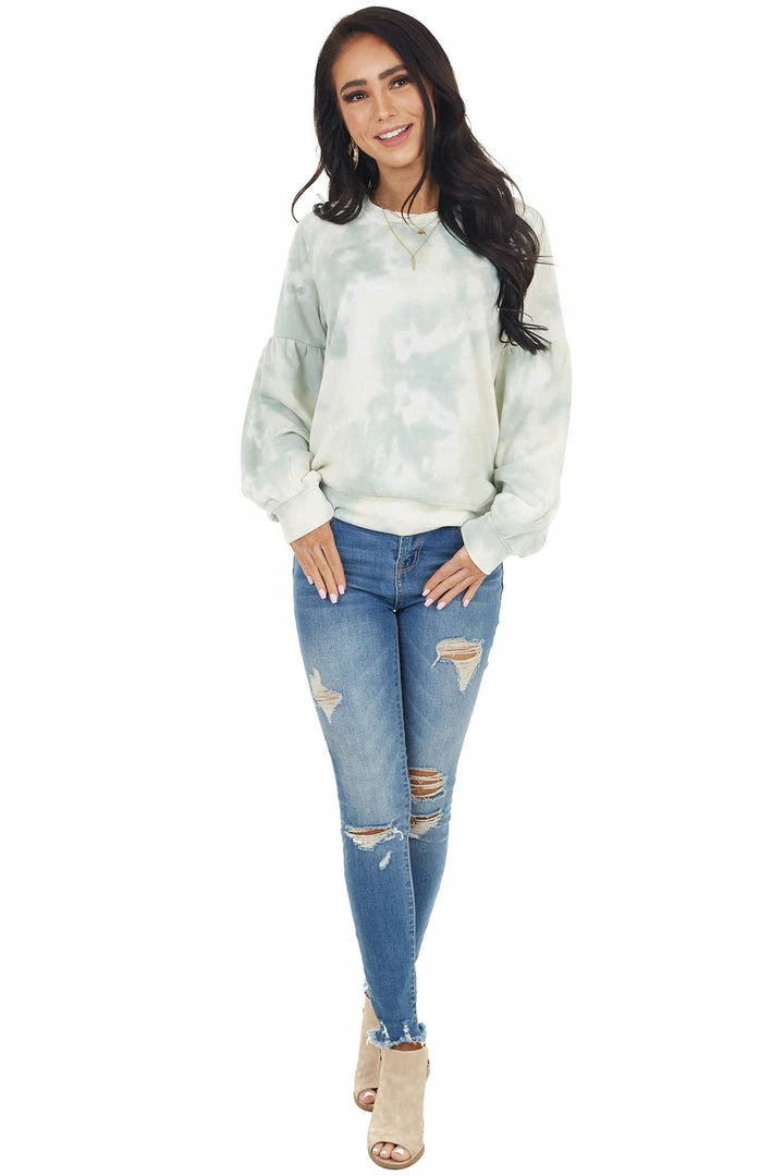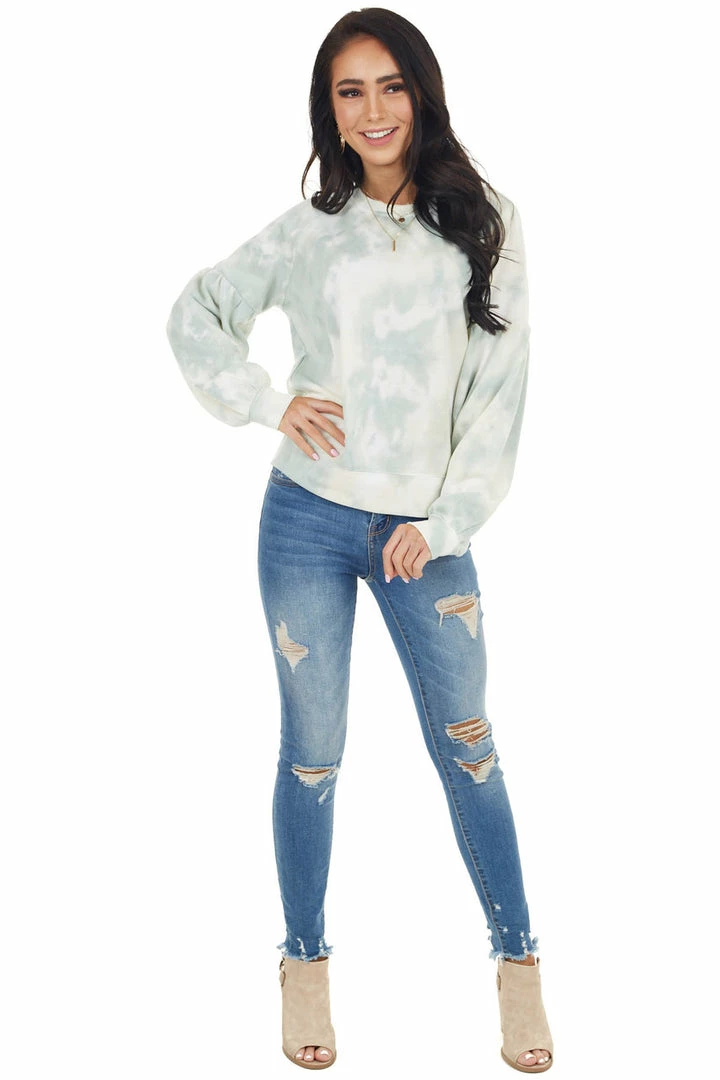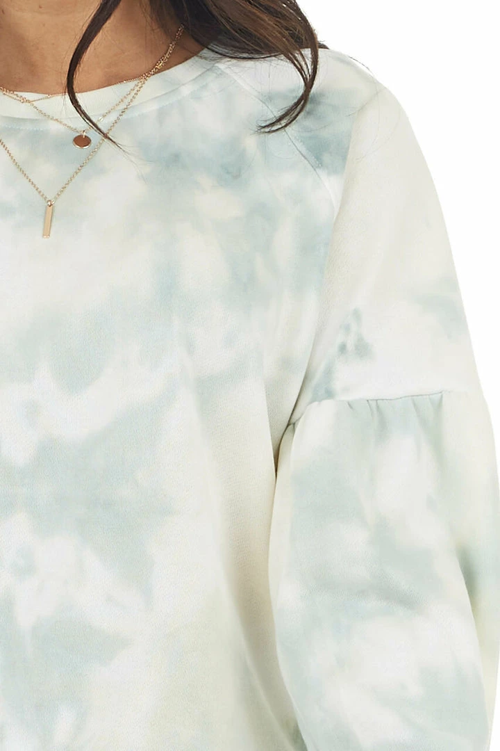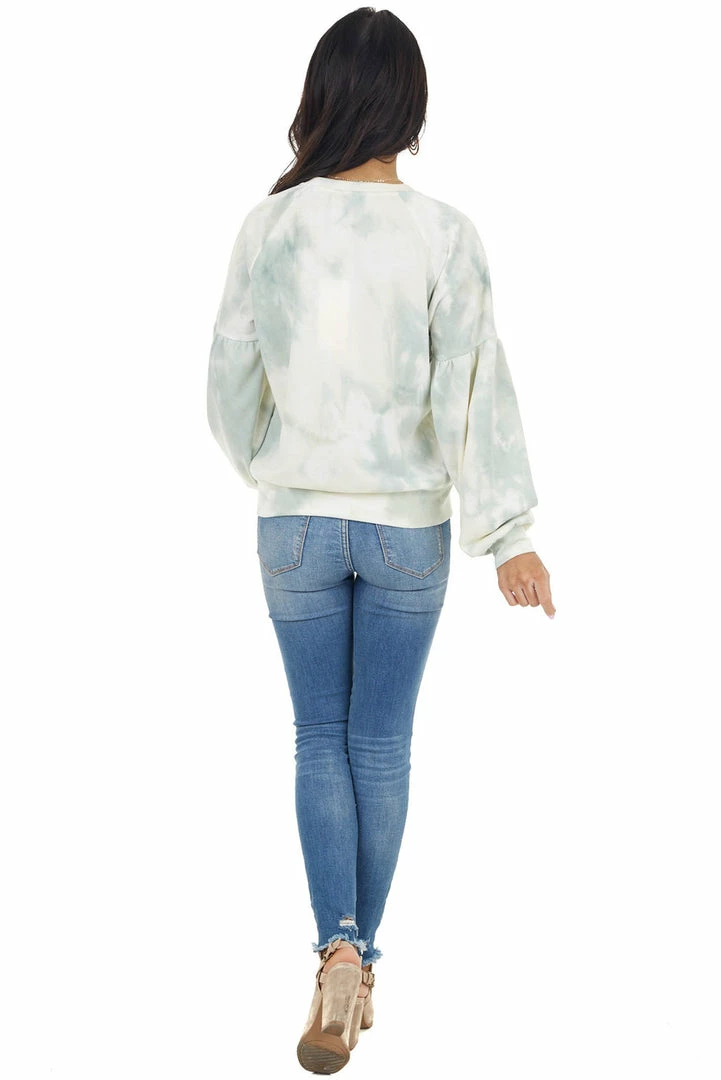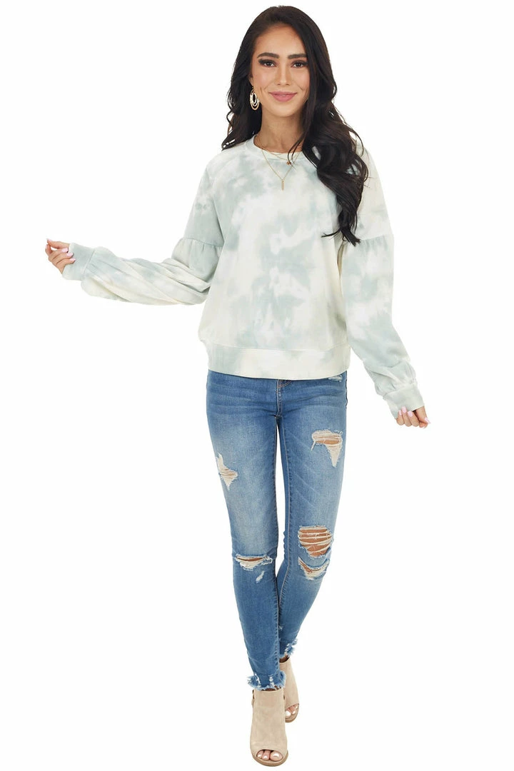 - Sage and Cream Tie Dye Top with Long Drop Shoulder Sleeves