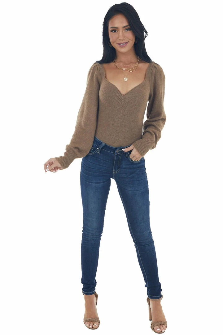 - Long puff sleeves with ribbed cuffs