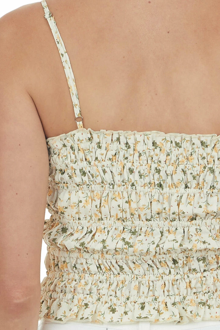 - Cream Ditsy Floral Smocked Sleeveless Crop Top