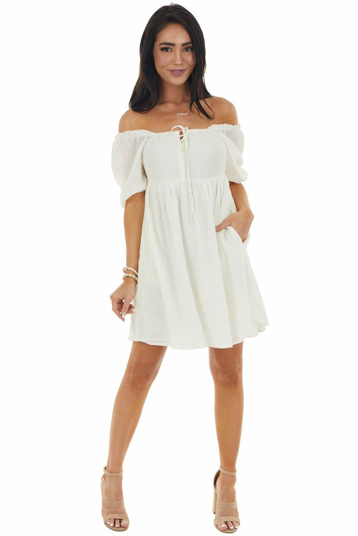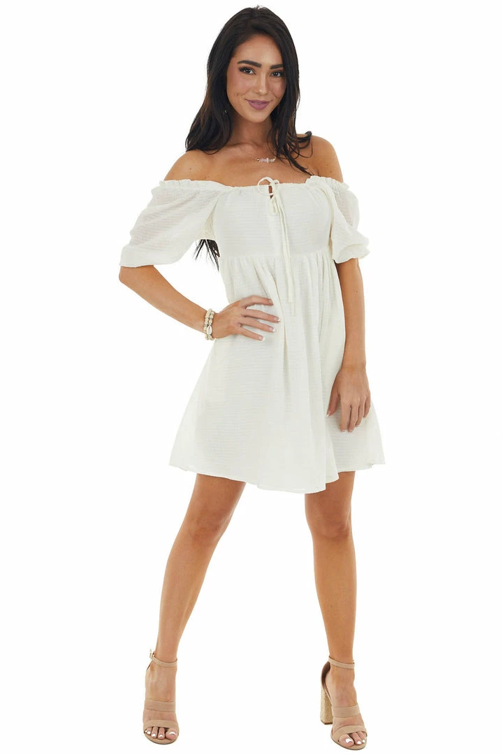 - Vanilla Short Sleeve Smocked Back Mini Dress