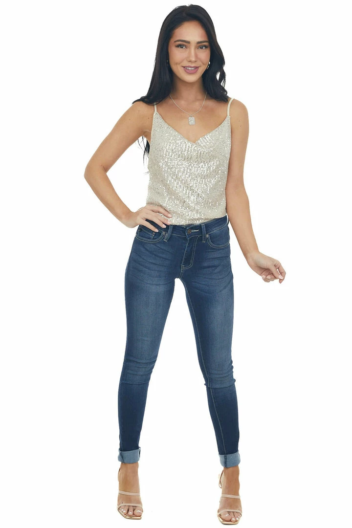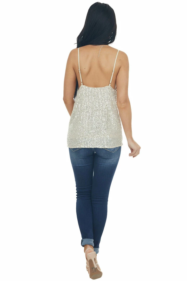 - Champagne Sequin Sleeveless Cowl Neck Tank