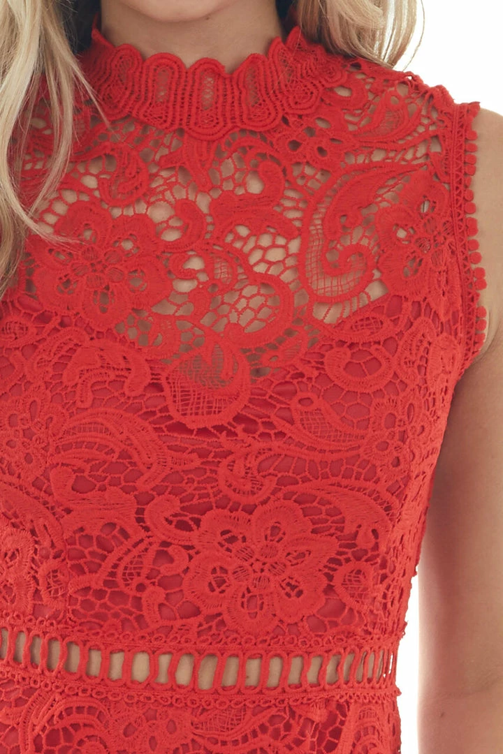 - Scarlet Sleeveless Crochet Lace Midi Dress