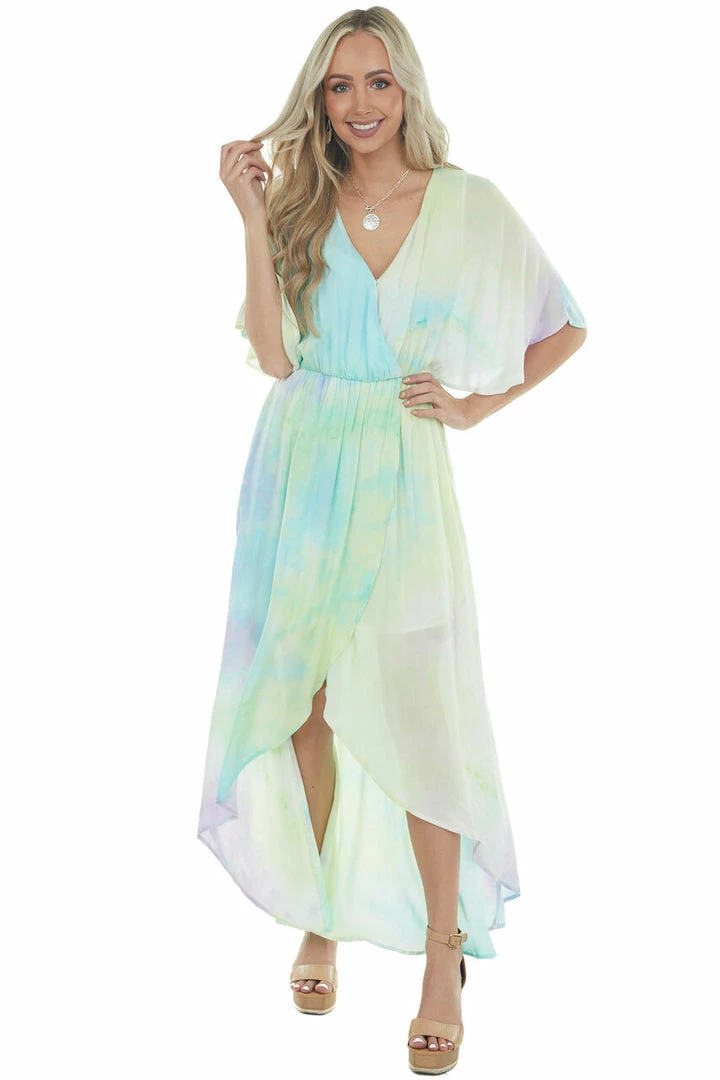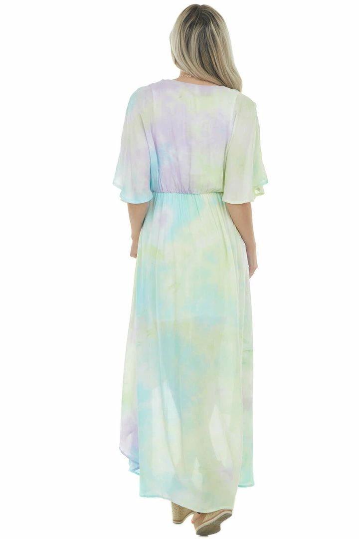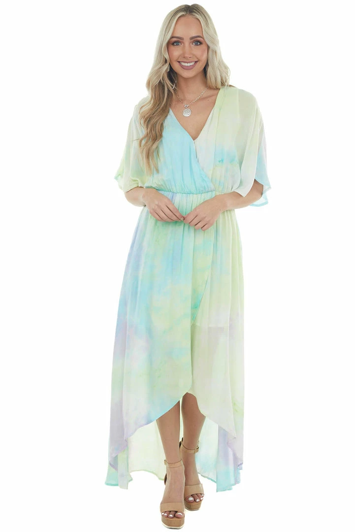 - Tie dye print in shades of Lime, Aqua, Lavender and Ivory