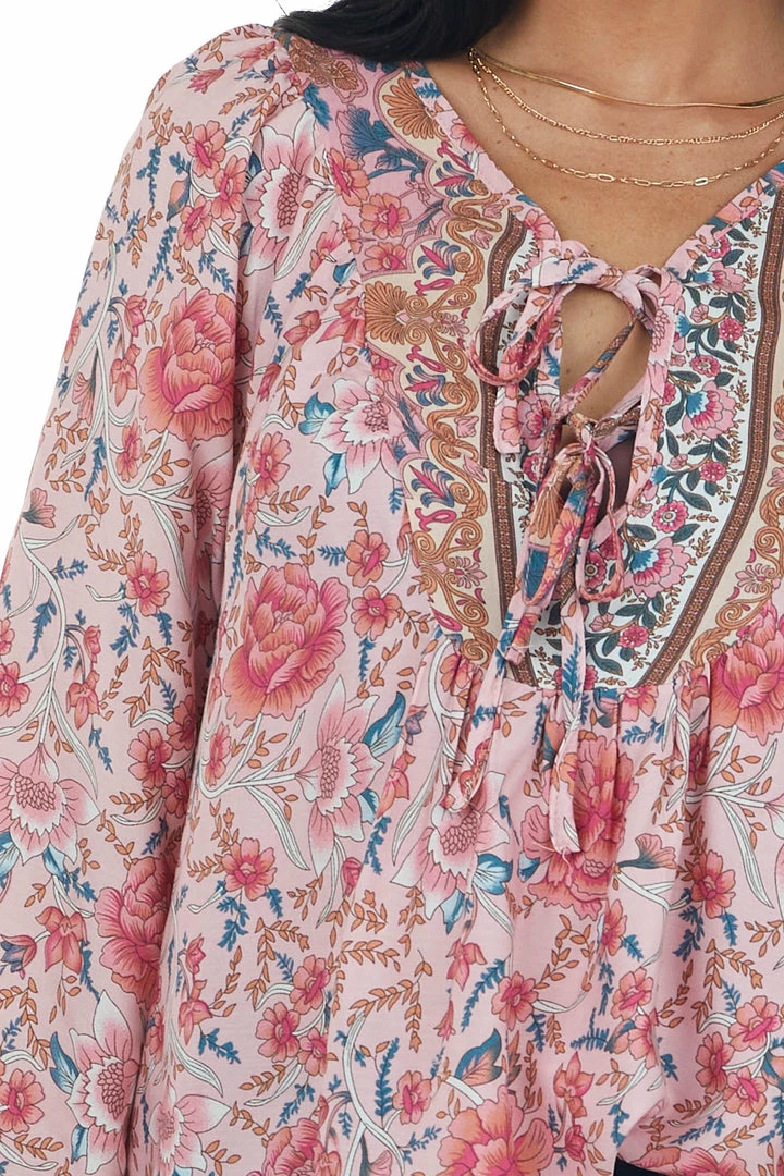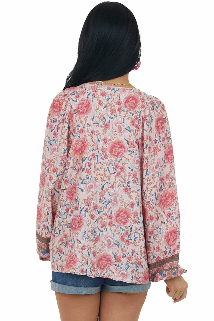 - Floral print in shades of Magenta, Baby Pink, Sandstone, Ivory, Camel, Sepia, Ocean and Pastel Blue