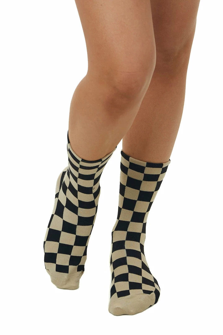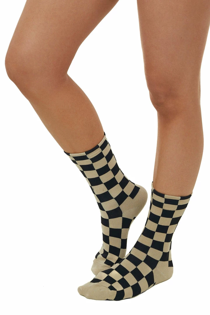 - Khaki and Black Checkered Calf Socks