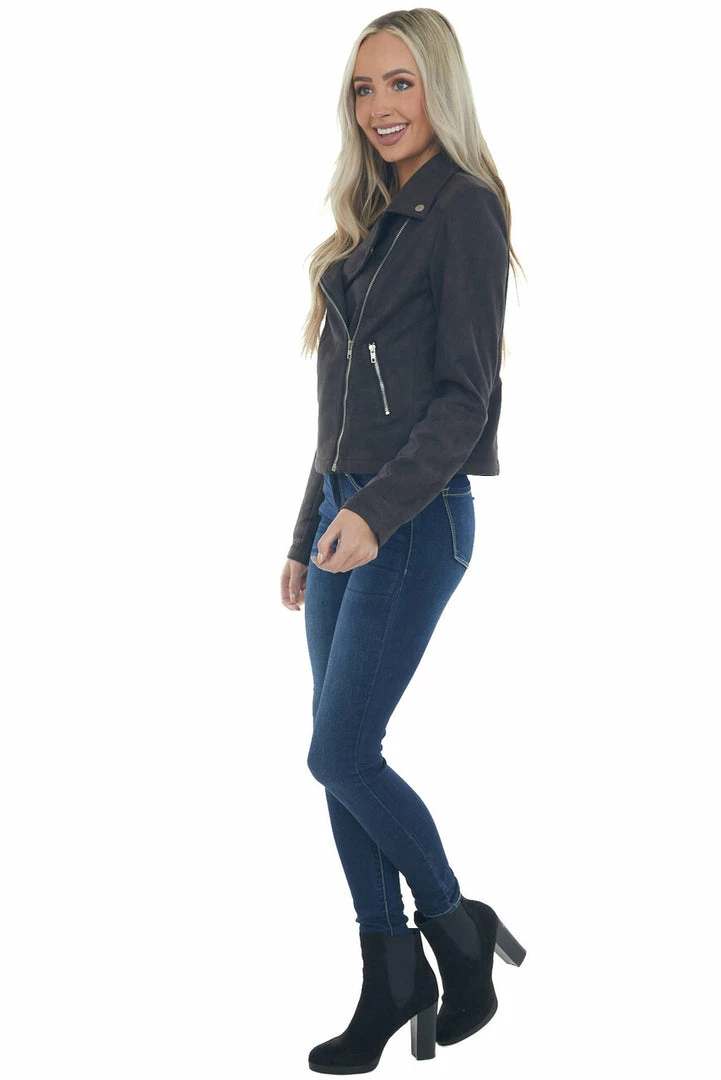- Black Suede Asymmetrical Zipper Moto Jacket