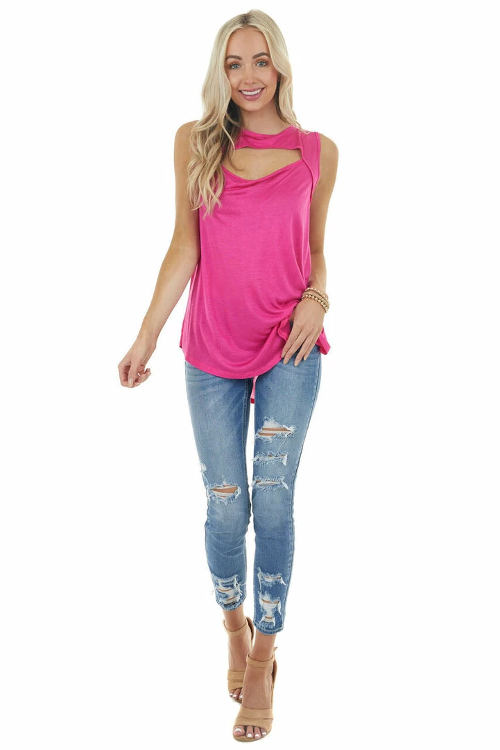 - Magenta Sleeveless Stretchy Knit Top with Cut Out Detail