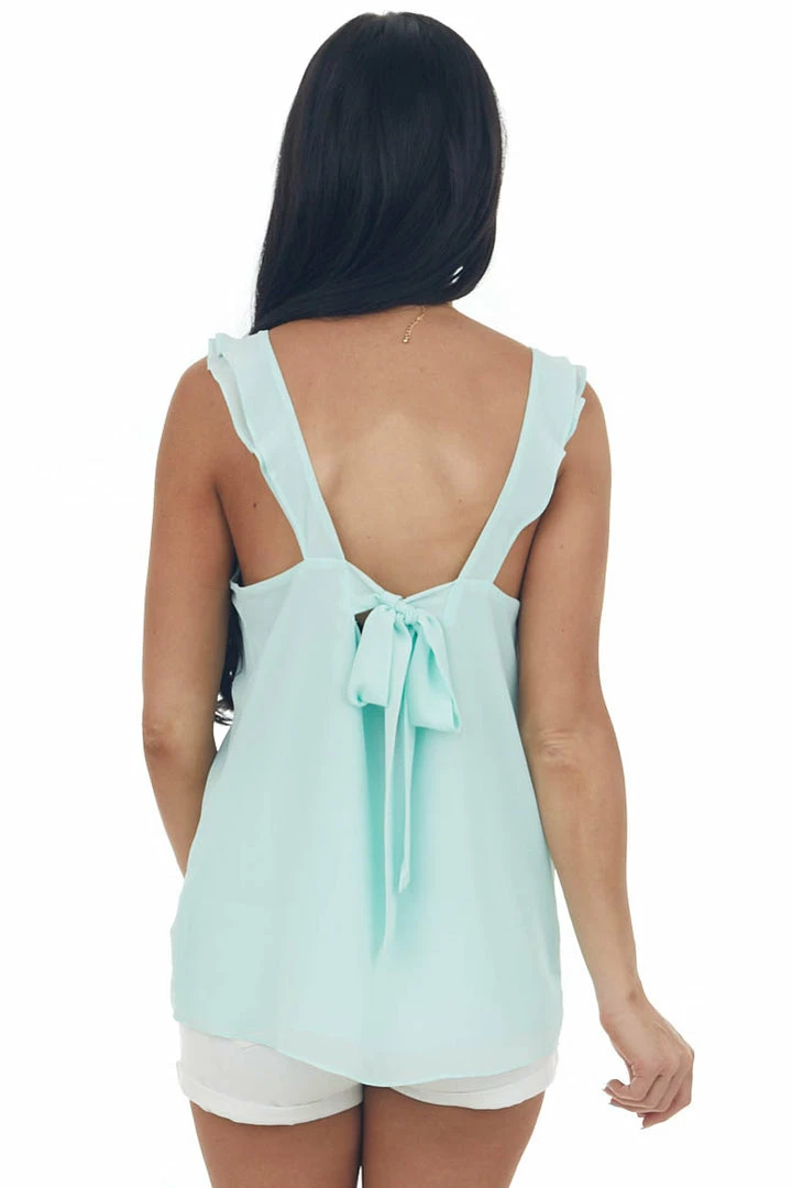 - Mint Ruffle Strap Woven Tank Top with Back Tie