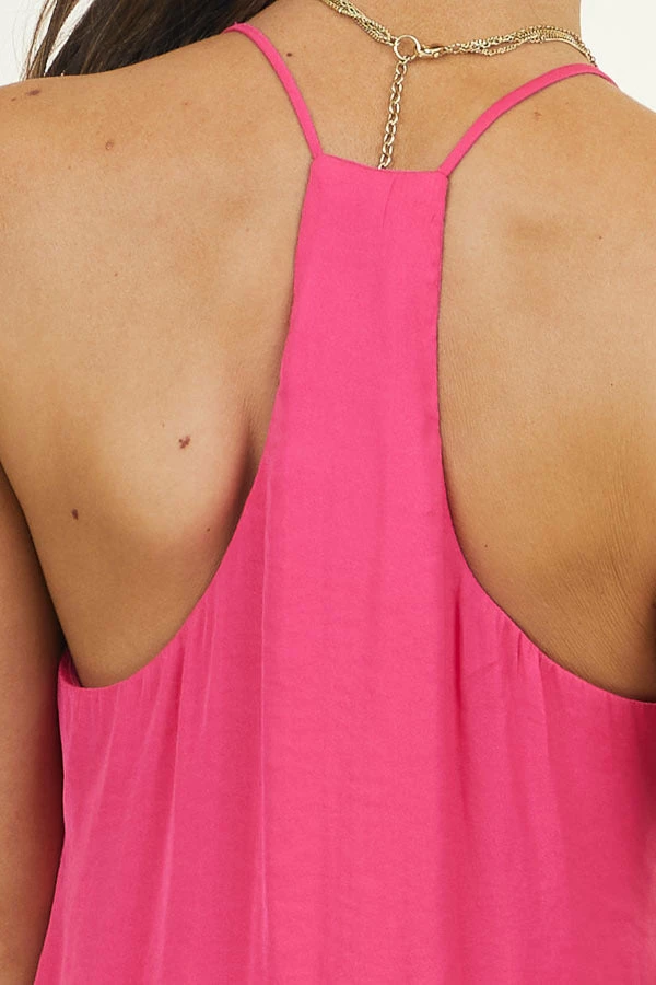 - Dark Pink Spaghetti Strap Flowy Woven Tank Top