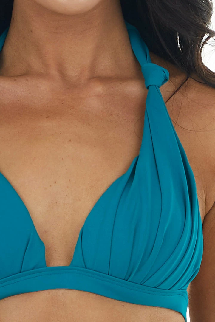 - Teal High Leg Tied Strap Bikini Set with Knot Details