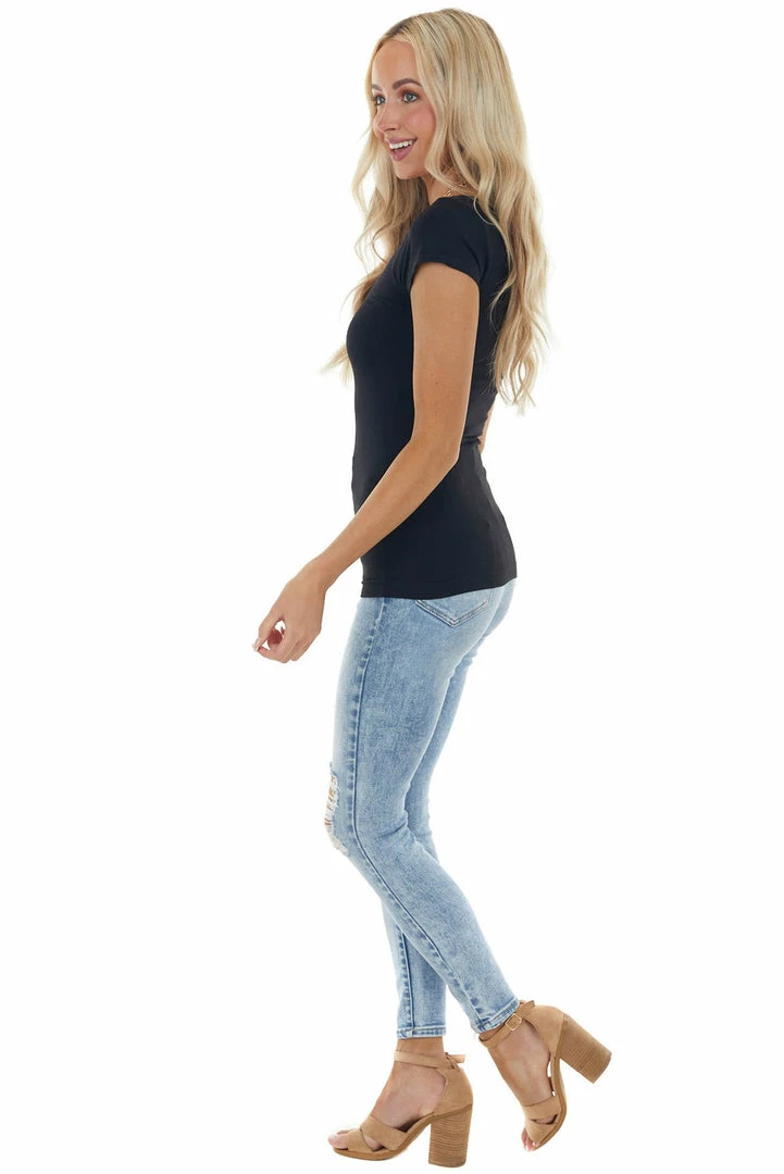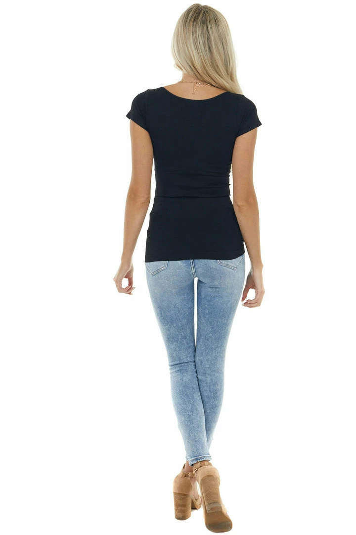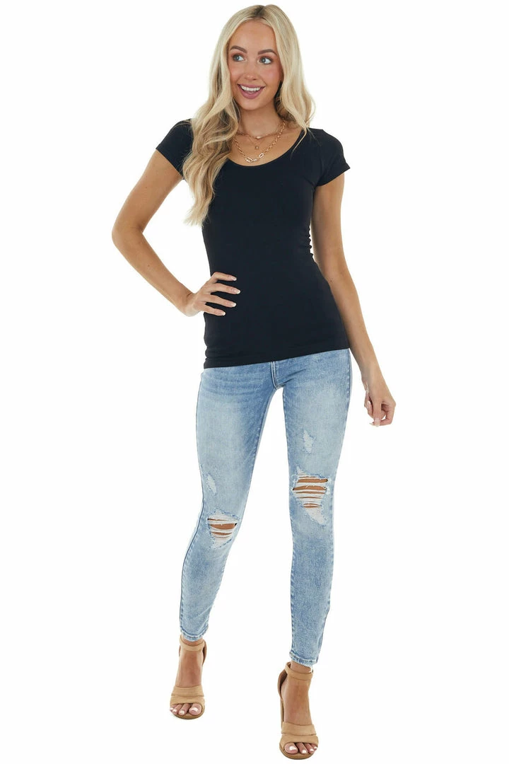- Black Cap Sleeve Stretchy Scoop Neck Tee