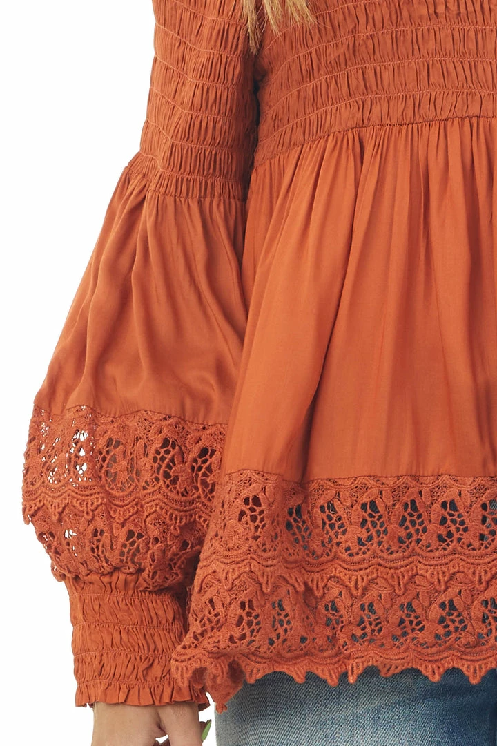 - Tawny Smocked Off Shoulder Babydoll Lace Top