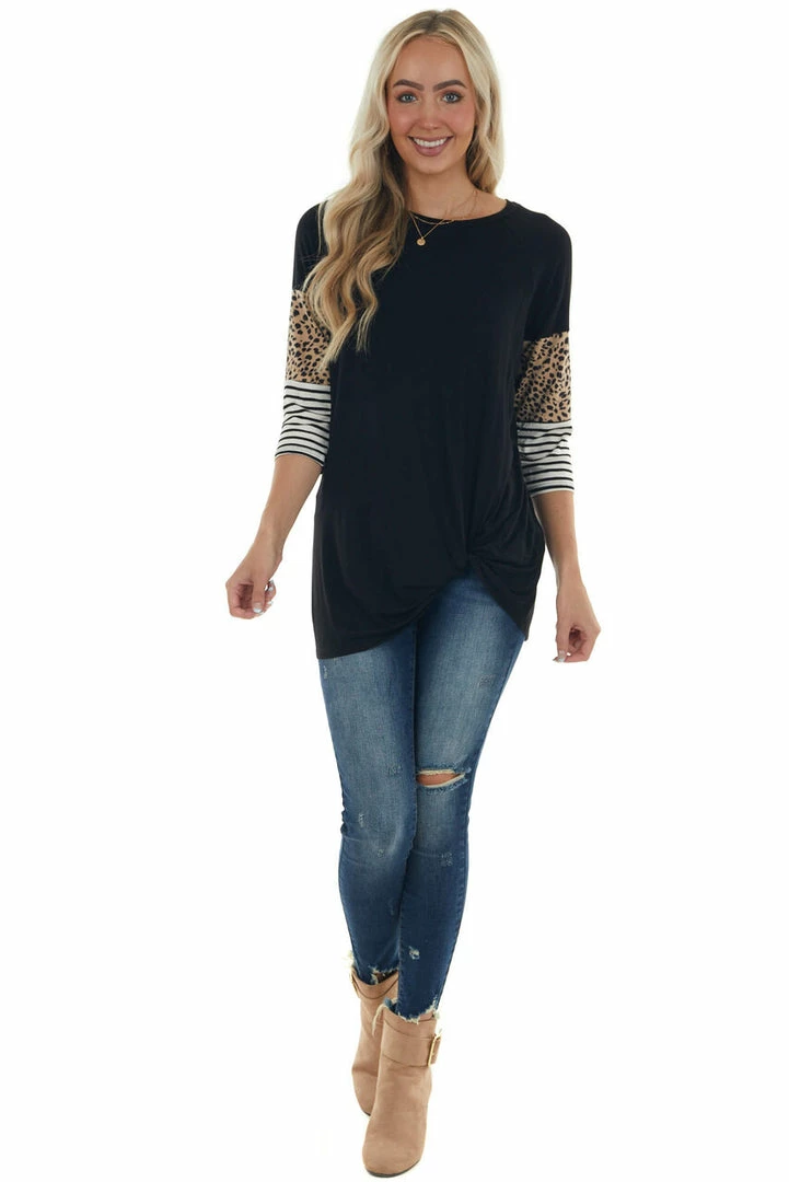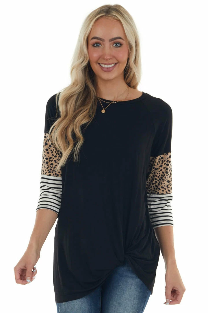 - Black Multi Print Knit Top with 3/4 Sleeves