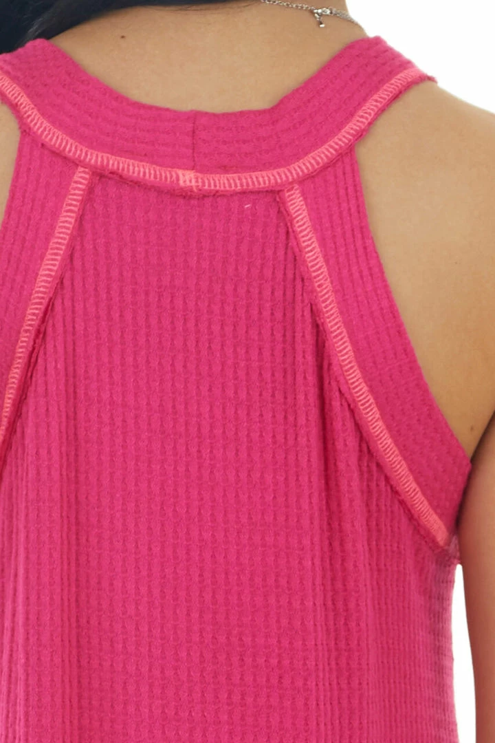 - Deep Magenta Sleeveless Exposed Stitch Waffle Knit Top