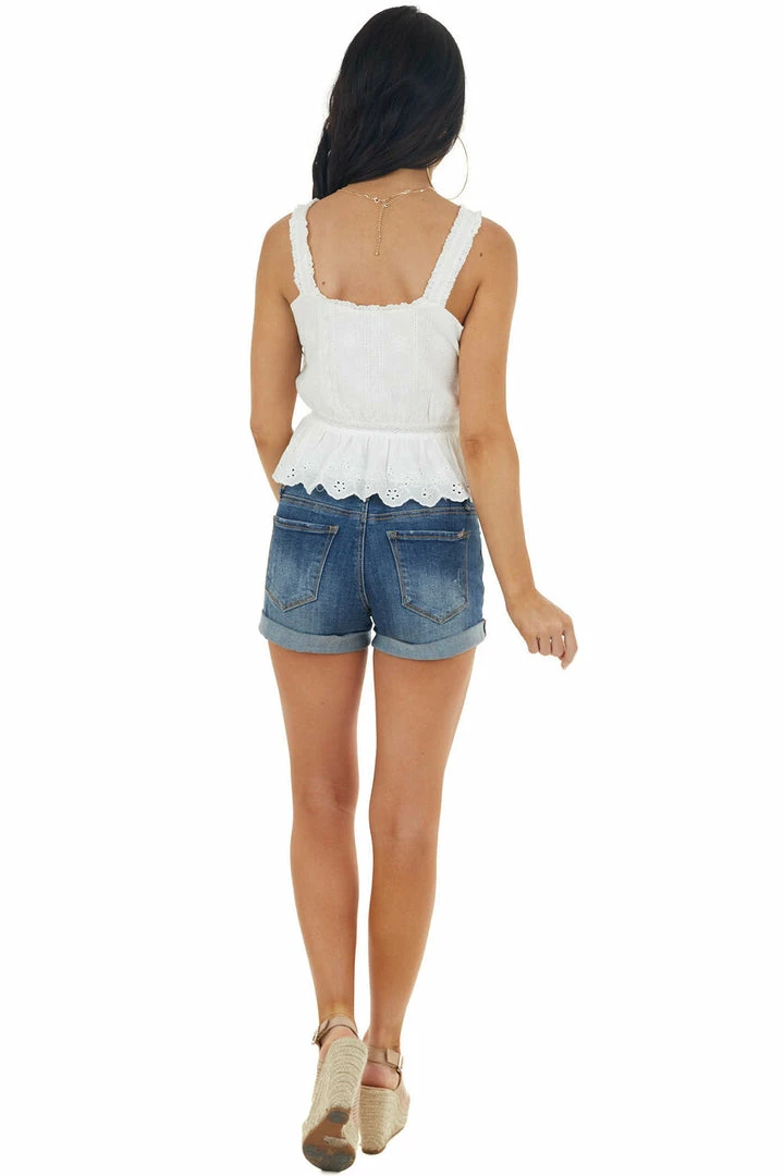 - Pearl Sleeveless Button Up Lace Tank Top