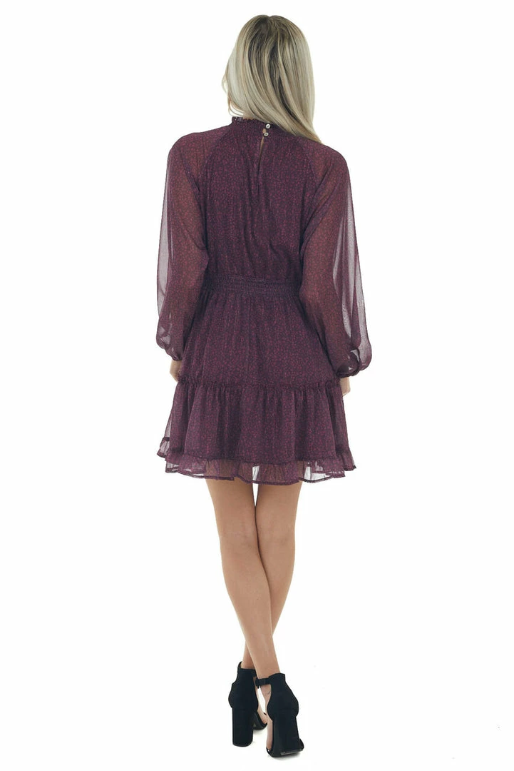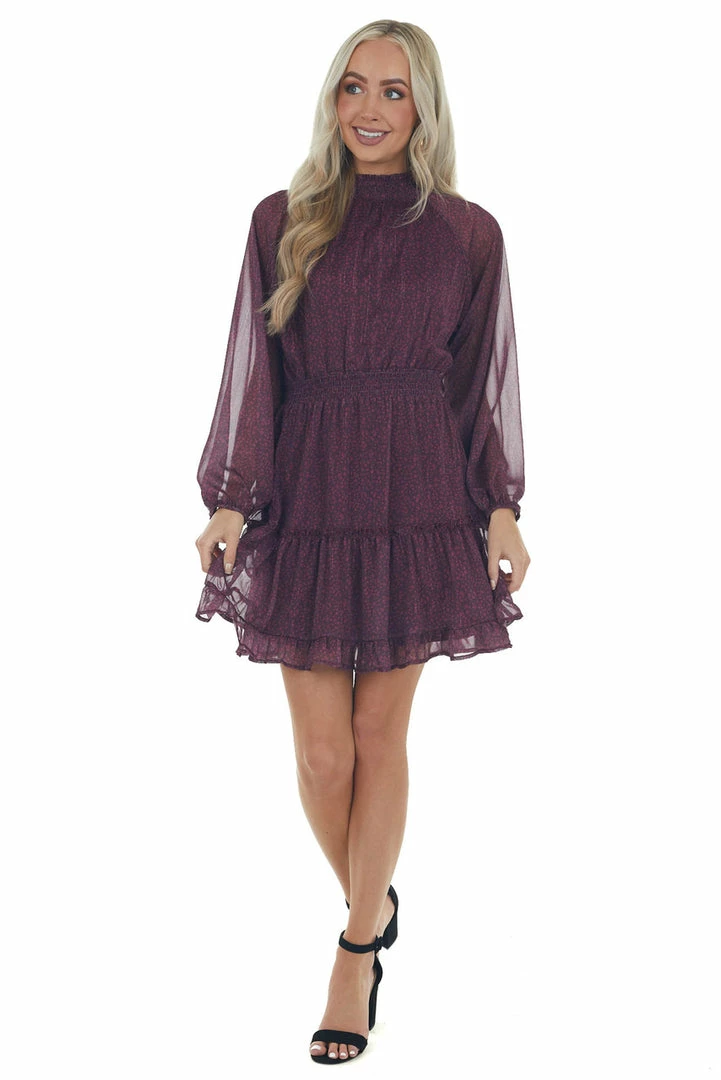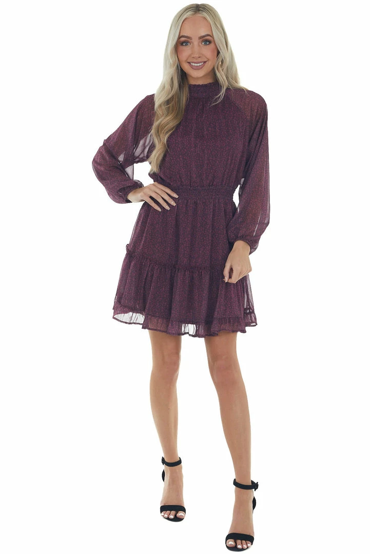 - Berry Ditsy Floral Smocked Mock Neck Dress