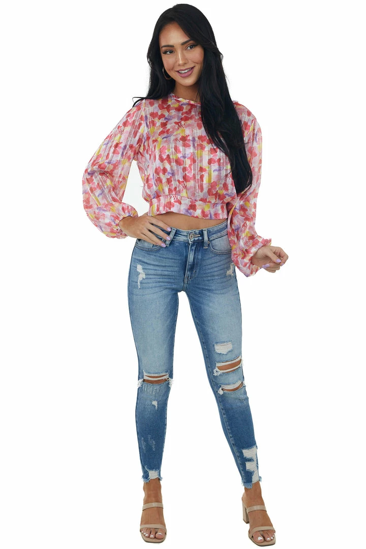 - Print in shades of Ivory, Sunshine Yellow, Crimson Red, Blush, Lilac, and Indigo