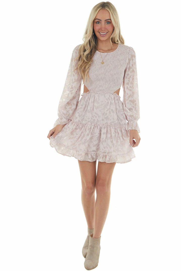 - Blush Floral Textured Cut Out Waist Mini Dress