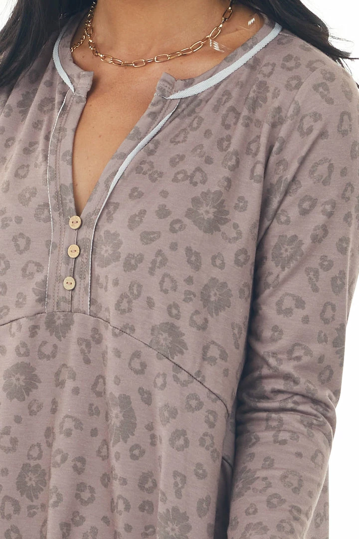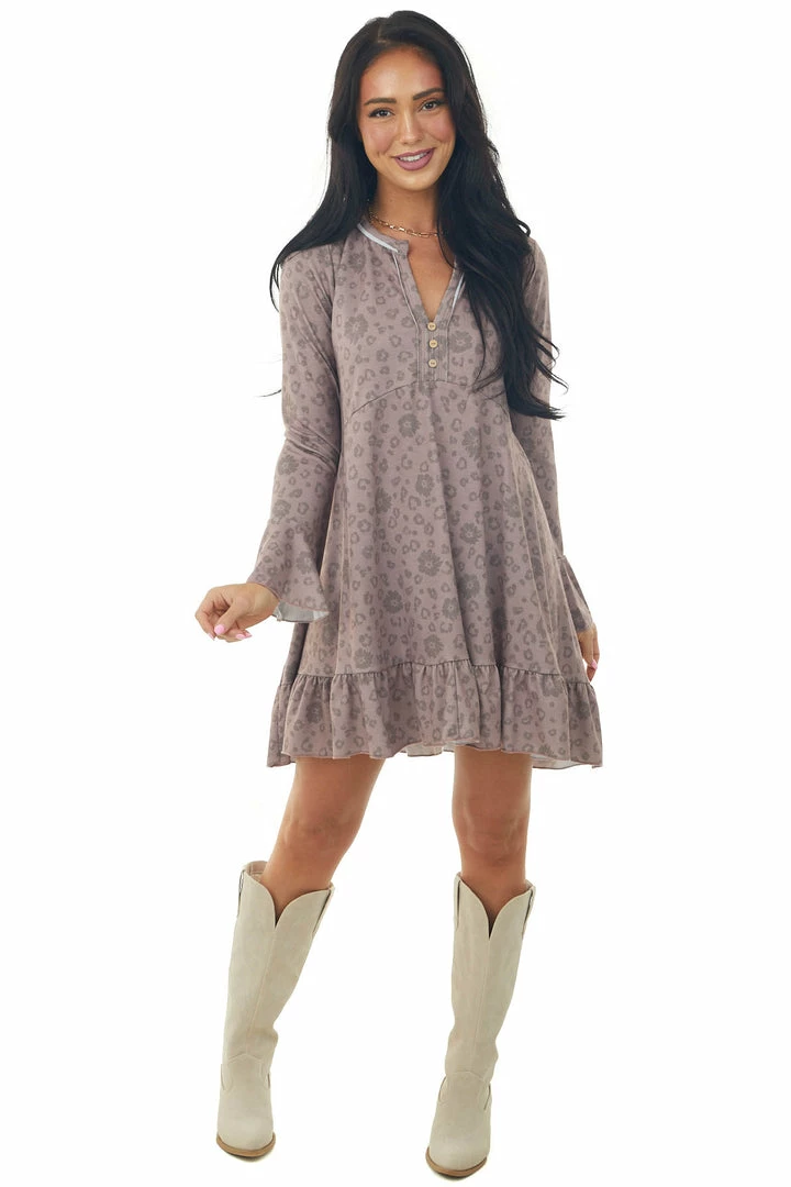 - Dusty Rose Floral and Leopard Print Ruffle Babydoll Dress