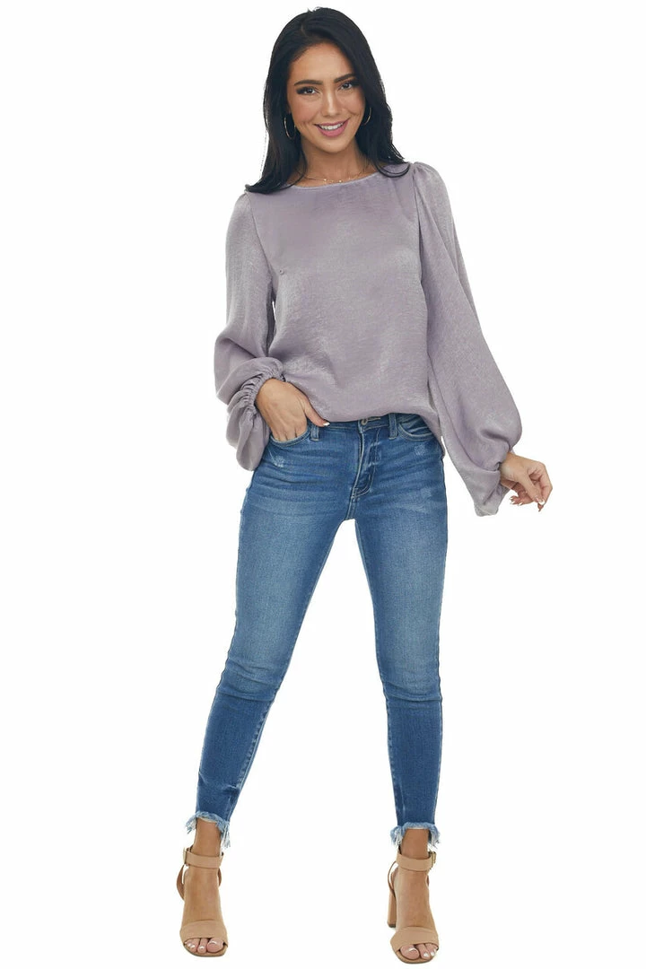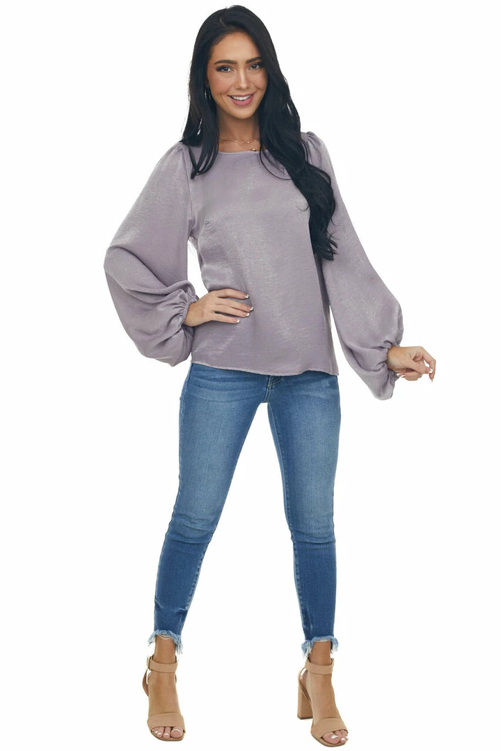 - Faded Lavender Bubble Sleeve Cowl Back Blouse