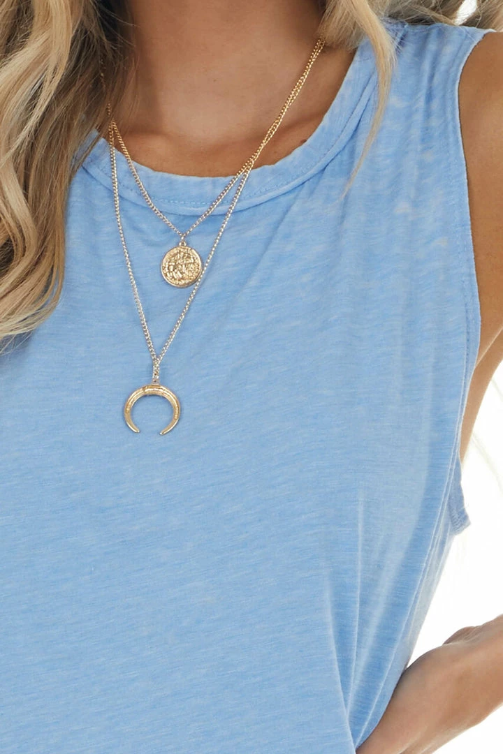 - Heathered Cornflower Stretchy Knit Tank Top with Raw Hemline