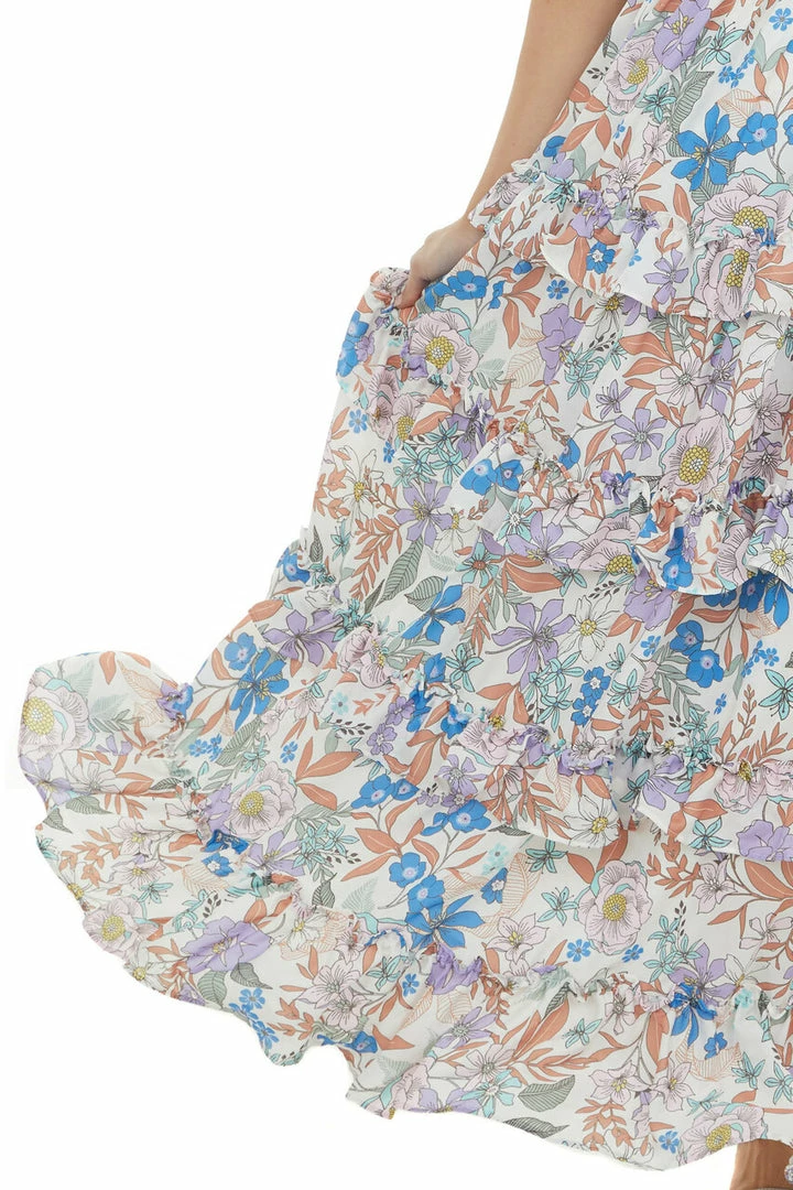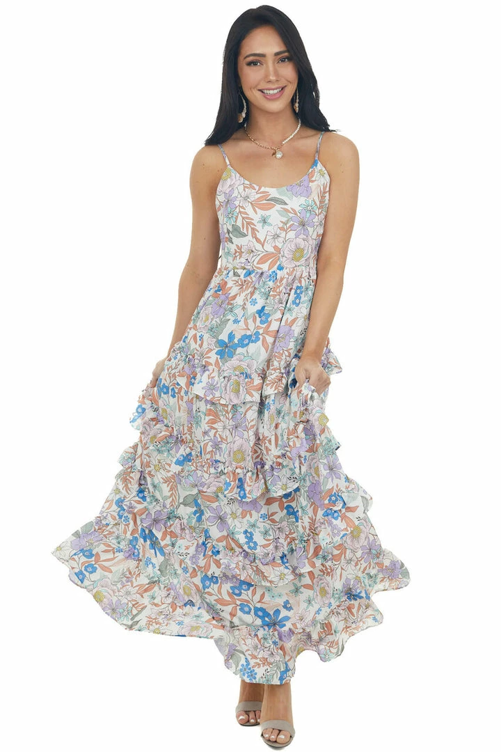 - Off White Floral Print Ruffle Tier Maxi Dress