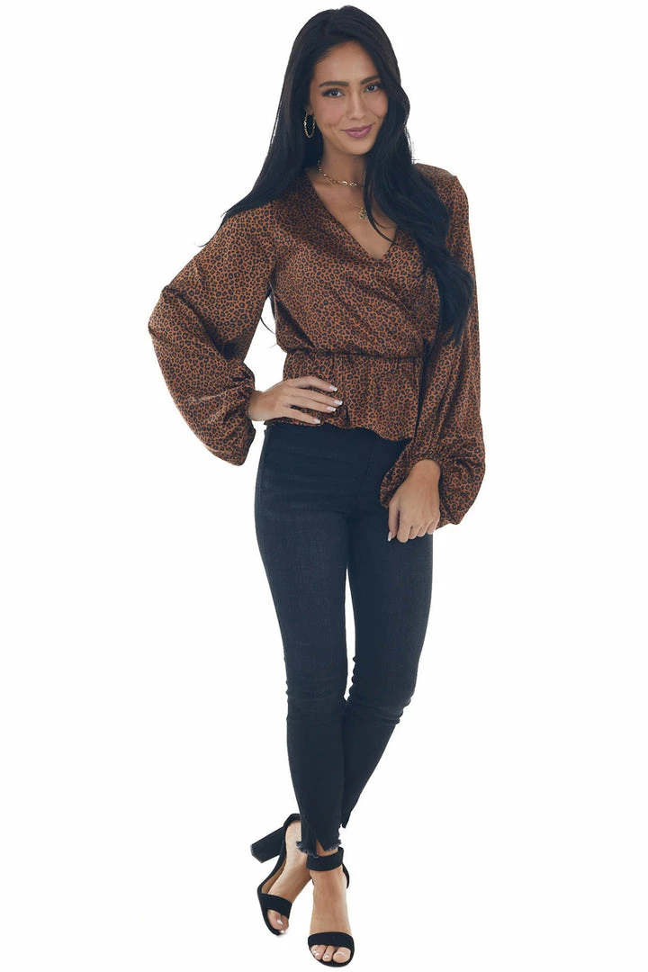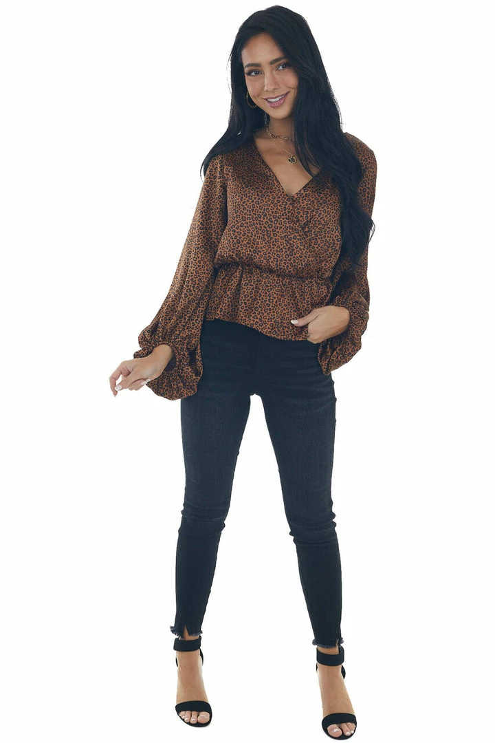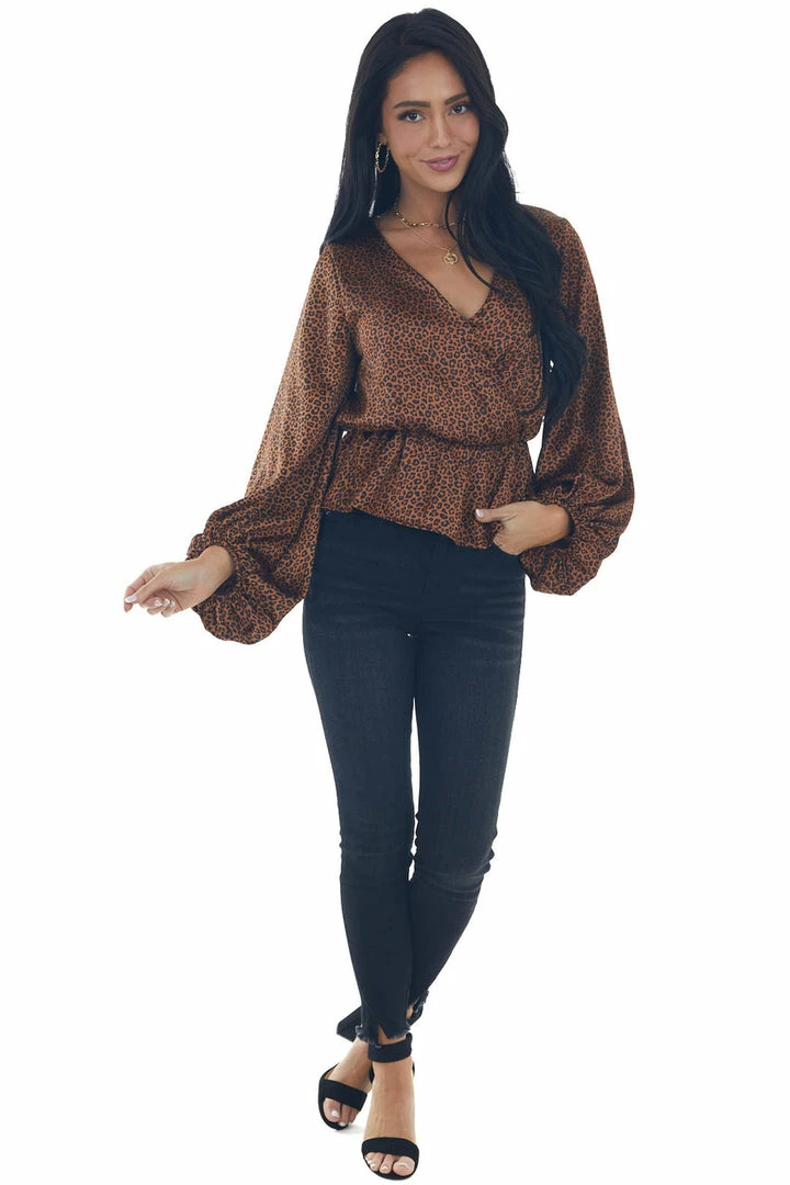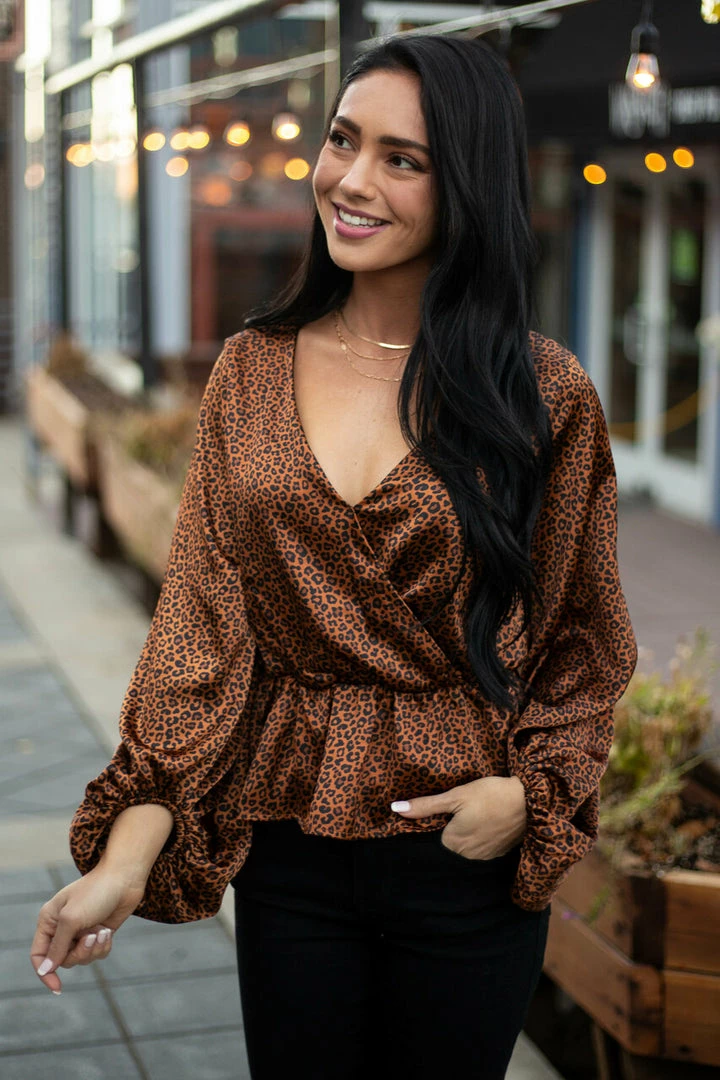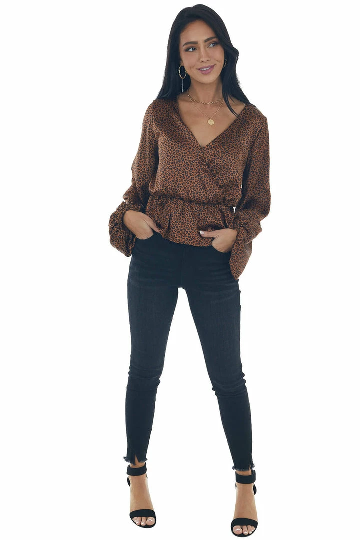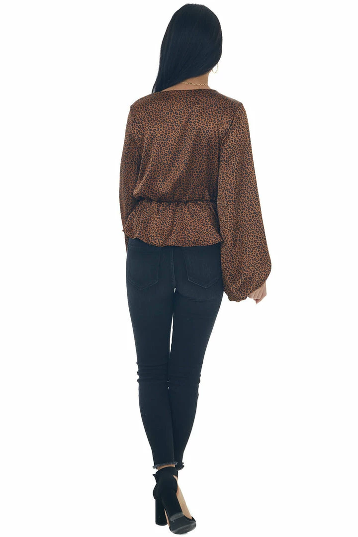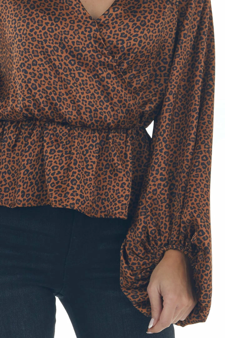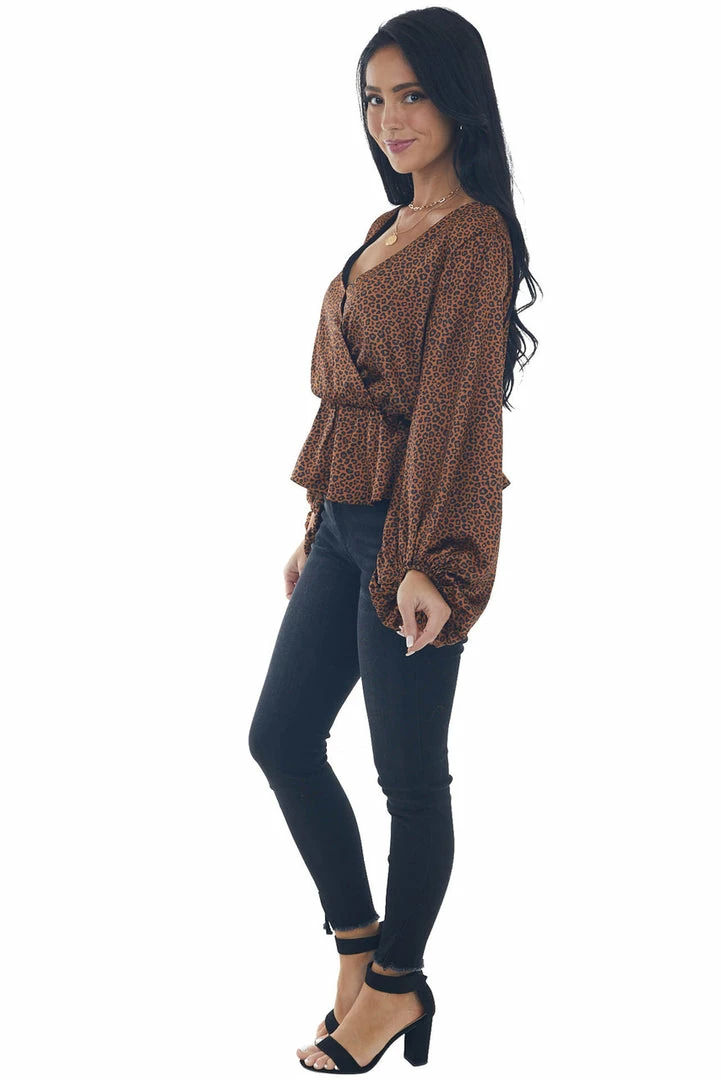 - Spice Leopard Print Surplice Peplum Blouse
