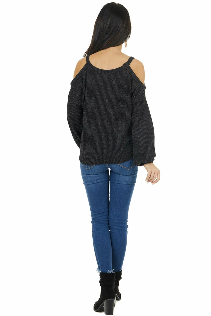 - Charcoal Two Tone Long Sleeve Knit Top with Cold Shoulders