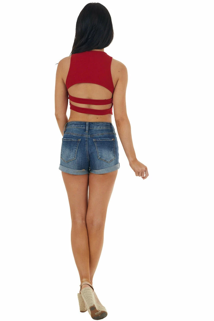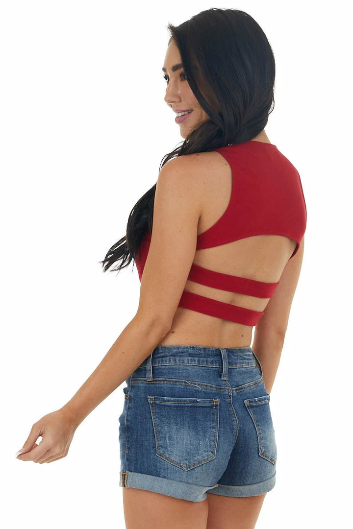 - Cherry Sleeveless Strappy Open Back Crop Top