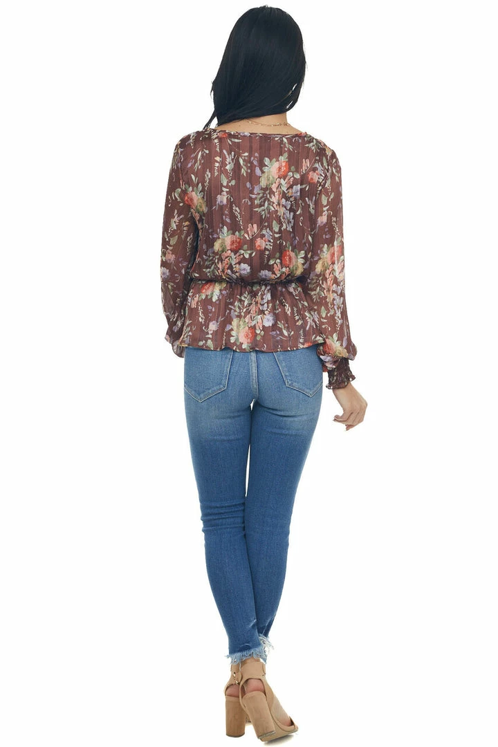 - Chestnut floral print non-stretchy jacquard striped woven self