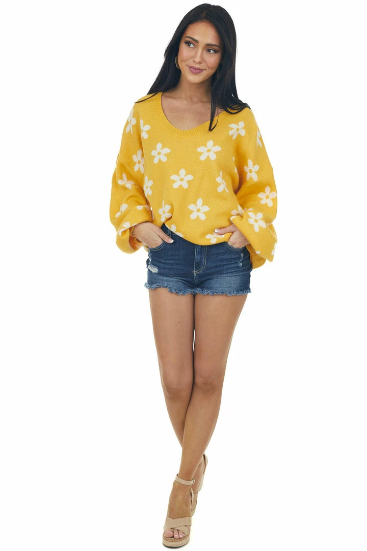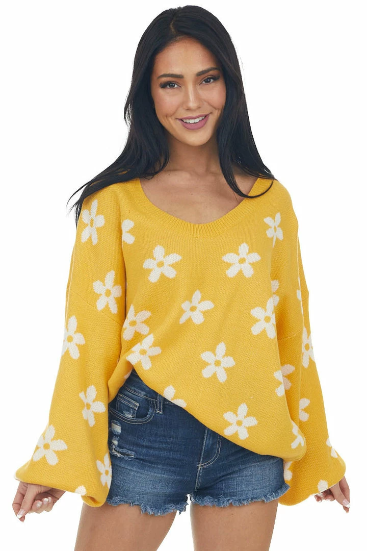 - Rich Amber and Ivory Daisy Print Sweater