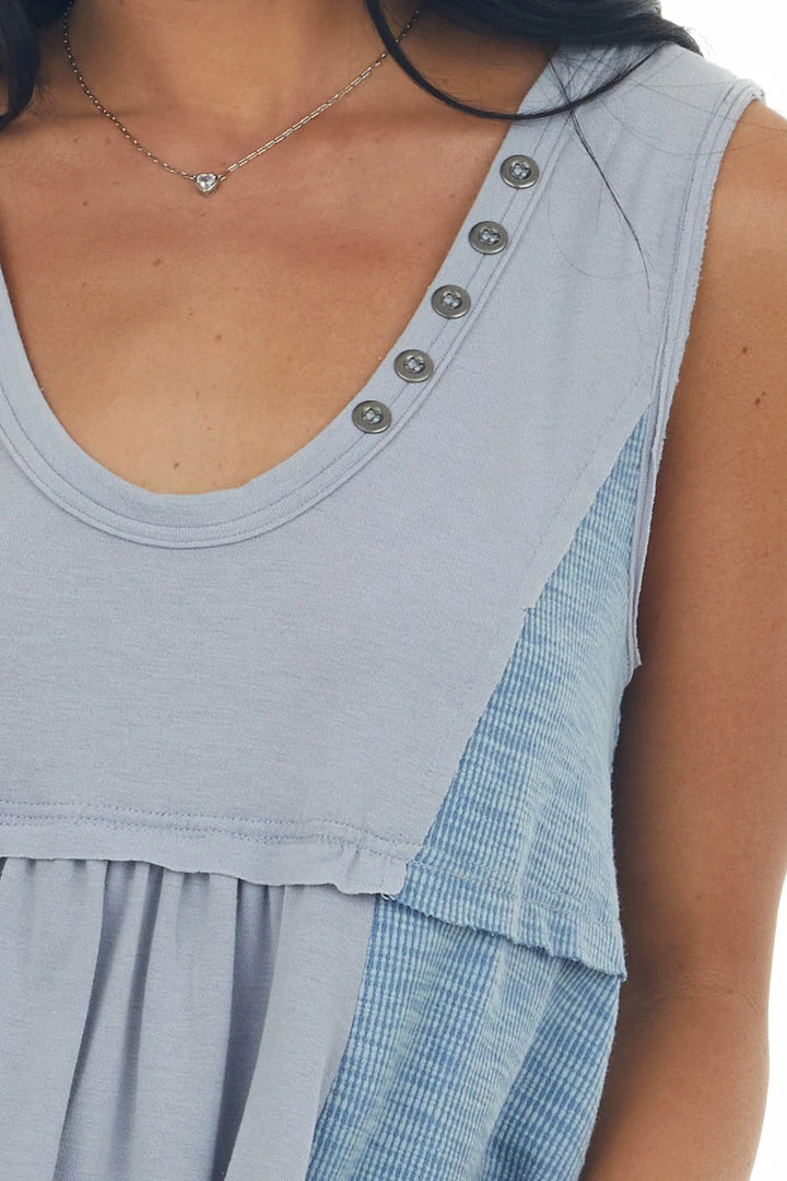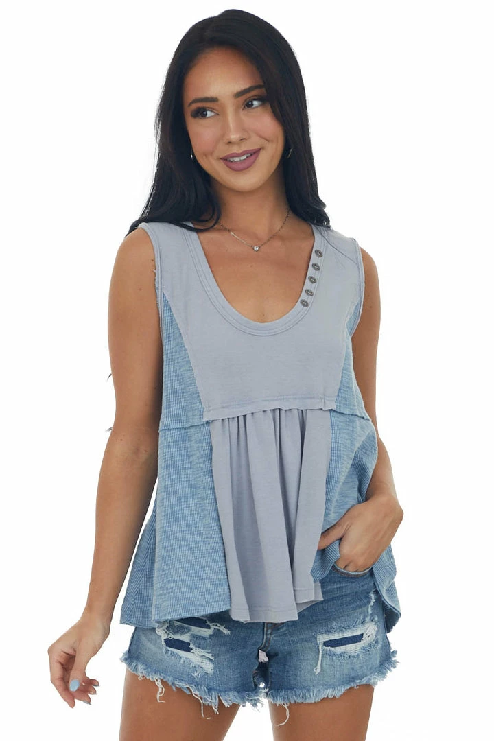- Slate Blue Scoop Neck Babydoll Knit Tank Top