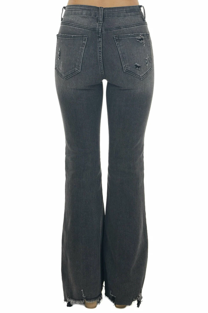 - Vintage Black High Rise Raw Hem Flare Fit Jeans