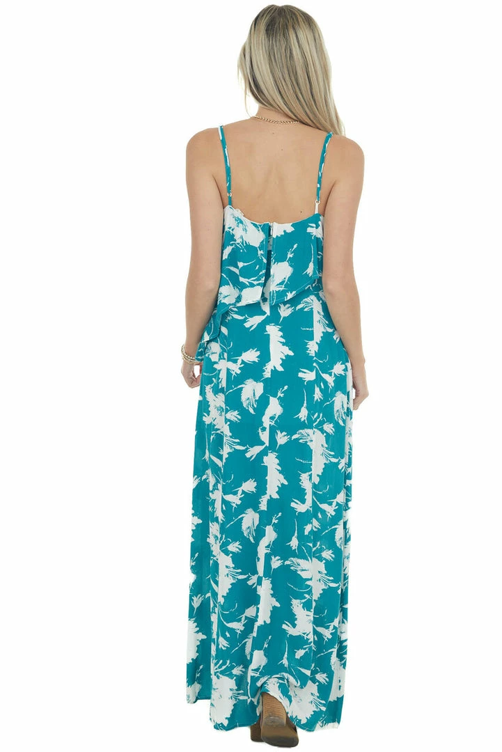 - Pine Abstract Floral Print Woven Maxi Dress