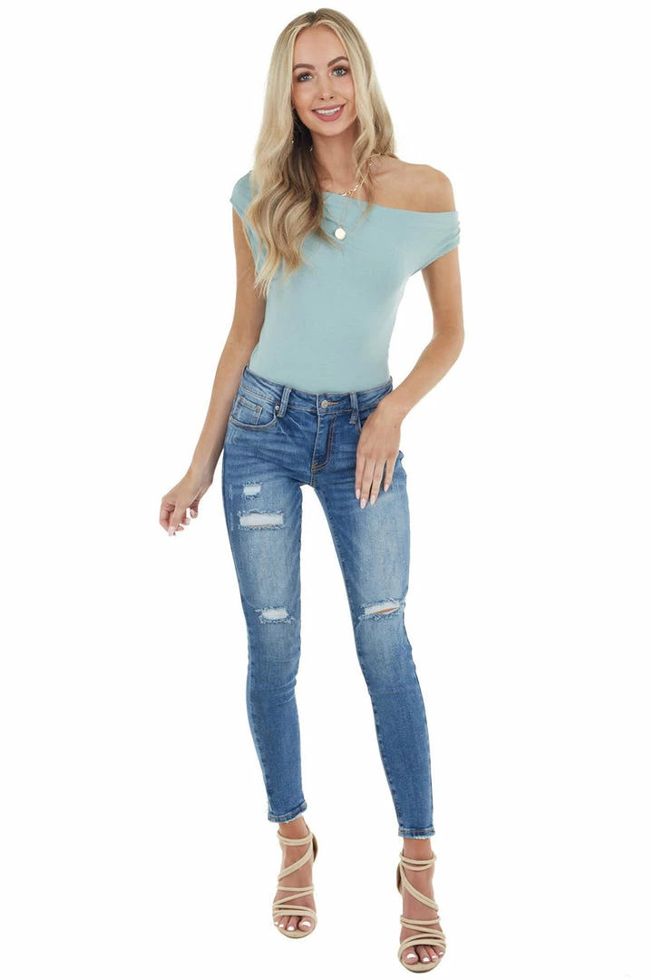 - Sage Sleeveless Off Shoulder Top with Draped Neckline