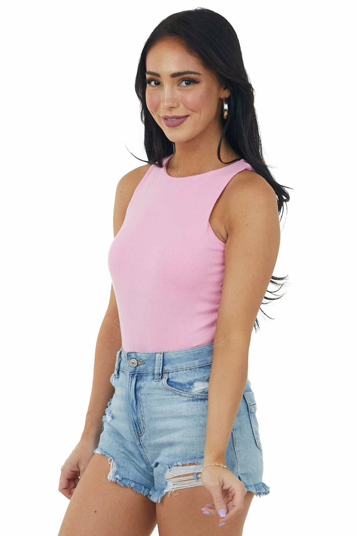 - Baby Pink Sleeveless Halter Ribbed Knit Bodysuit