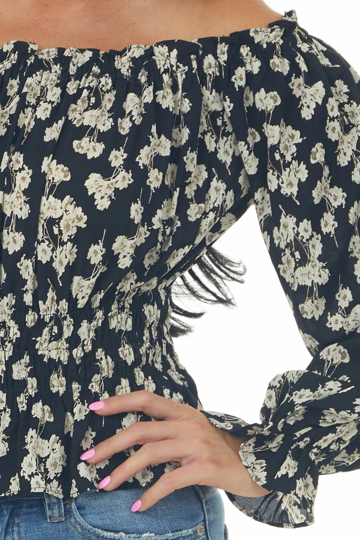 - Black Floral Off Shoulder Long Sleeve Blouse