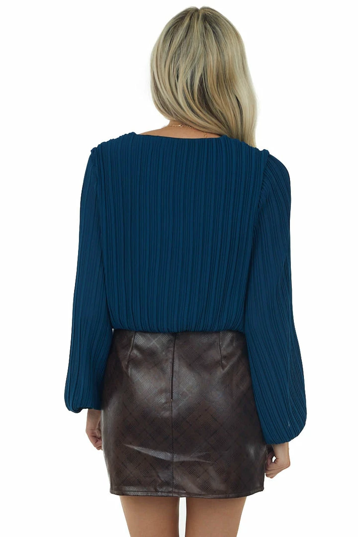 - Dark Teal Surplice Long Sleeve Pleated Blouse