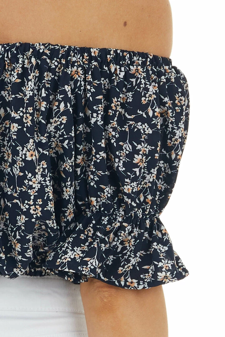 - Deep Navy Blue Ditsy Floral Off Shoulder Woven Crop Top