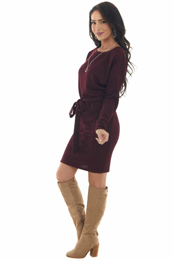 - Dark Wine Ribbed Long Sleeve Short Dress