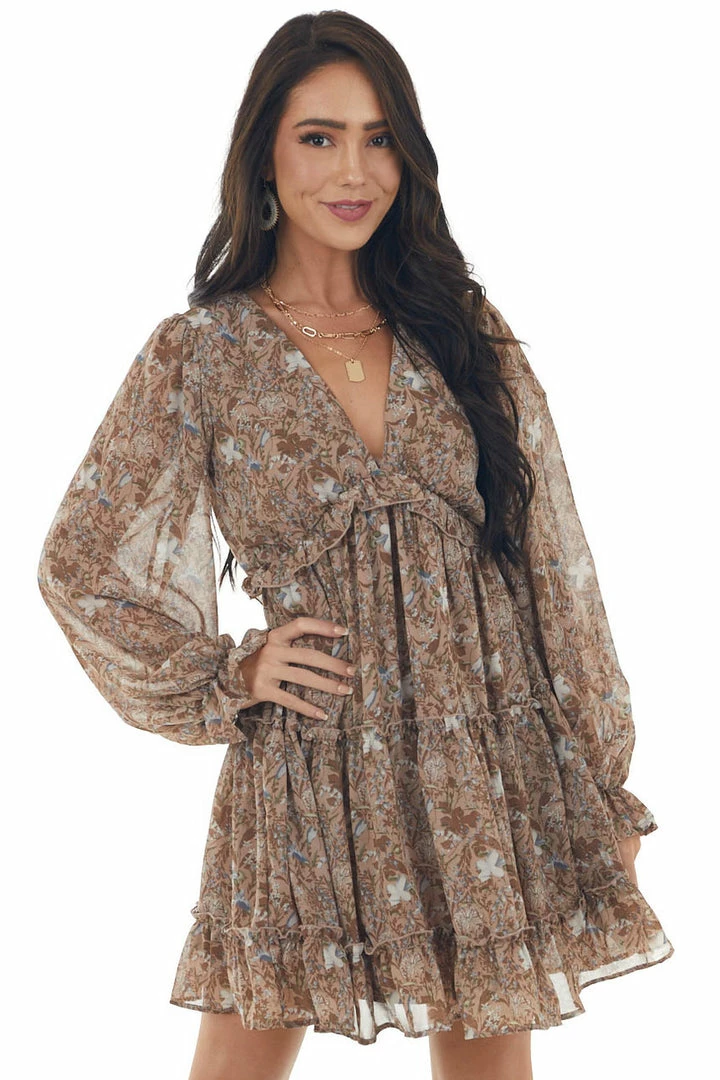 - Floral print in shades of Sepia, Ocean, Hunter Green, and Ivory