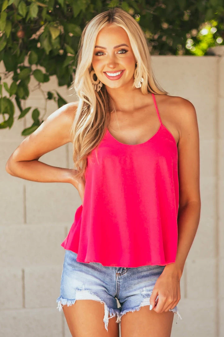 - Hot Pink Textured Scoop Neck Swing Cami Blouse